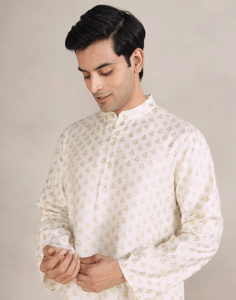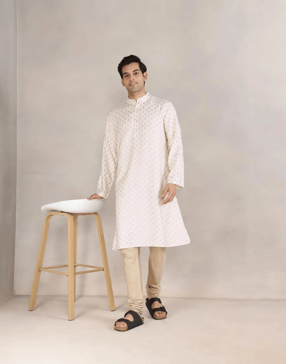 Off white Viscose Silk Hand Block Printed Long Kurta