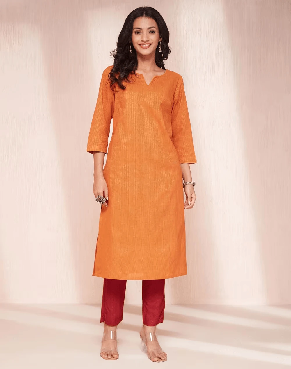Reimagine simplicity with this minimalistic kurta set that's perfect for any occasion. Its lightweight fabric ensures breathable comfort, while the straight silhouette and round neck slit bring understated elegance. Matched with a plain dupatta, this ensemble is a must-have for effortless ethnic style.