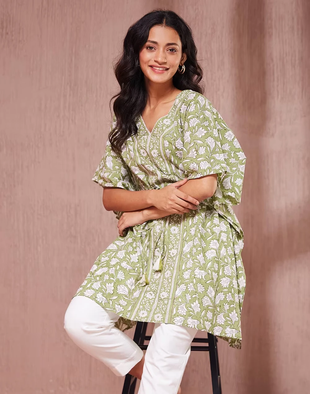 A timeless kaftan with a relaxed fit, this piece is perfect for versatile styling. The adjustable drawstring waist adds a tailored touch, while wide sleeves create a breezy silhouette. Suitable for both relaxed gatherings and daytime wear, its graceful design complements any casual setting. The breathable fabric ensures day-long comfort, making it a practical yet elegant choice for a modern wardrobe.